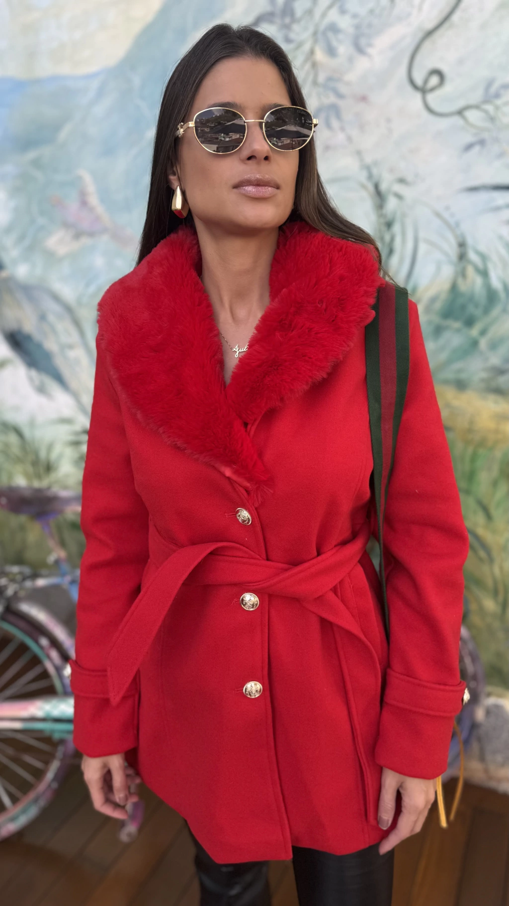 Casaco modelo alongado vermelho, a peça que faltava para você arrasar e se manter quentinha neste inverno.