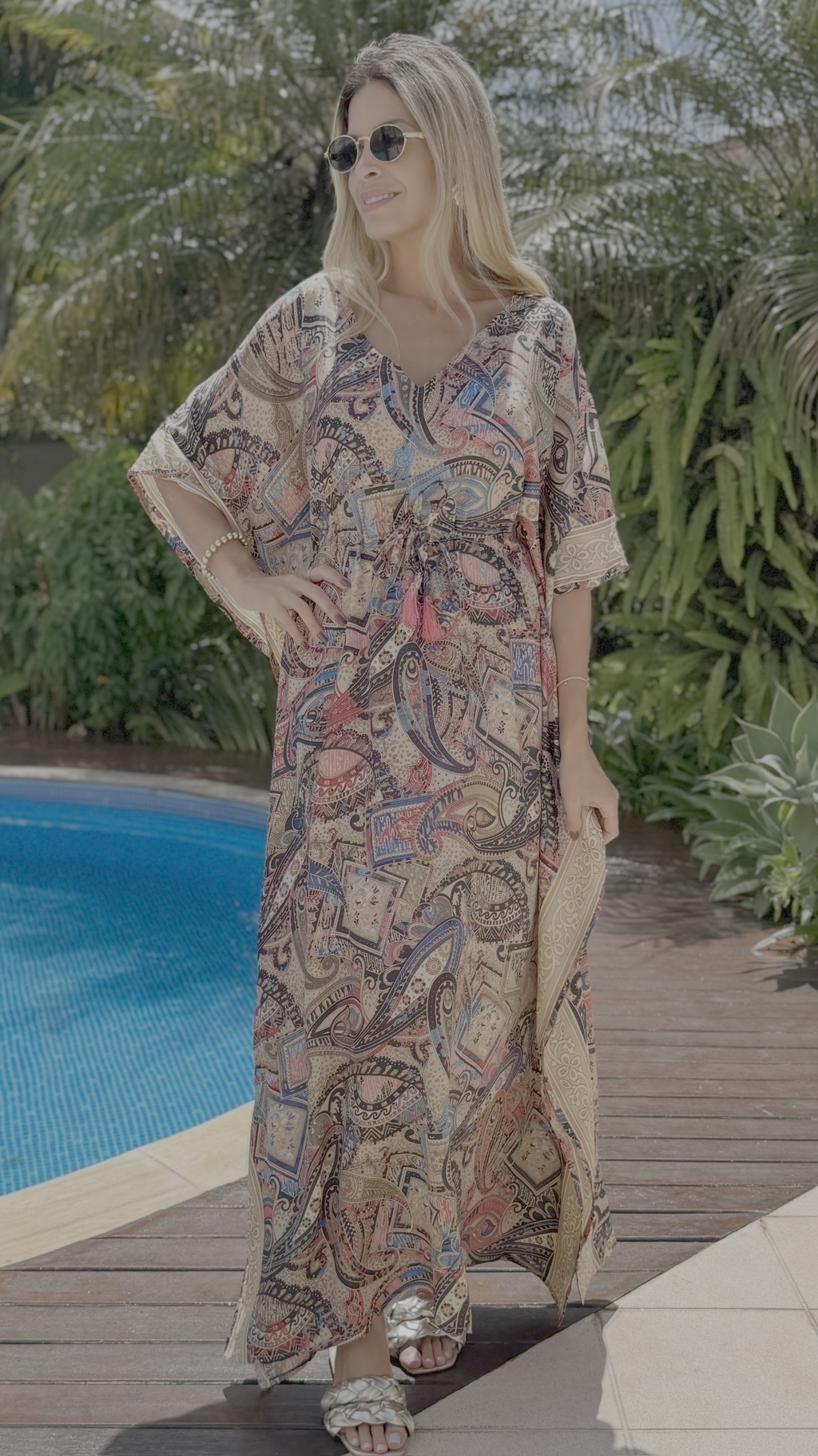 Kaftan em Seda Boho Chic disponivel em tamanho único.